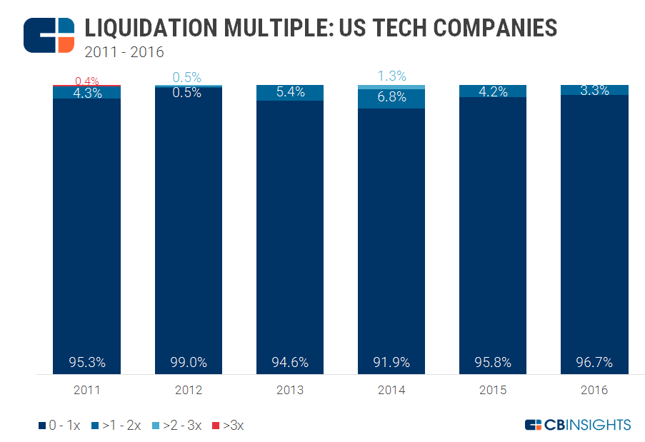 根據CB Insights的統計,投資人大多拿的是投資金額「1倍」的優先分配權,也就是投資人先求保底,把成本拿回來的意思。矽谷風險投資人Brad Fred也曾分享,在2001年網路泡沫前後,投資人不斷地拉高這個倍數,有時甚至喊到10倍之多。不過大致看來,這個倍數目前大多介於1~3倍。