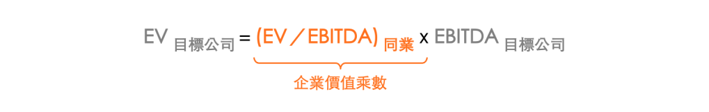 企業價值倍數是由EV跟EBITDA所組成。其中,EV是指Enterprise Value(企業價值), 其由Equity Value(市值)加上 Net Debt(淨負債)而得,而Net Debt又由公司「長、短期借款」扣除「現金、其他流動金融資產」而得(簡化版算法)。